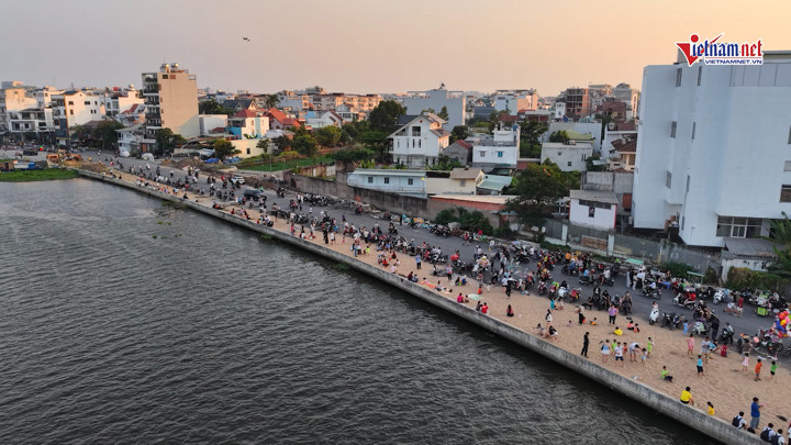 Đoạn bờ kè thuộc dự án cải tạo kênh Tham Lương - Bến Cát (phường An Nhơn) được ví như "bãi biển thu nhỏ", trở thành điểm check-in thu hút đông đảo người dân đến vui chơi, chụp ảnh.