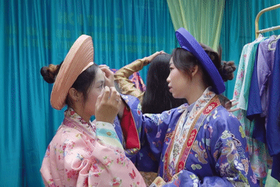 Sáng 8/3, nhiều bạn trẻ và du khách nước ngoài thích thú trải nghiệm mặc thử và check-in với áo dài, cổ phục Việt Nam tại phố đi bộ Nguyễn Huệ (TPHCM).