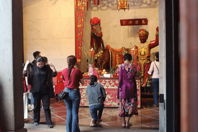 Những ngày đầu năm mới, đông đảo người dân và du khách đã đổ về chùa Ông (phường Chợ Lớn, TPHCM) để dâng hương, thực hiện nghi thức chui qua bụng ngựa Xích Thố và rung ch...