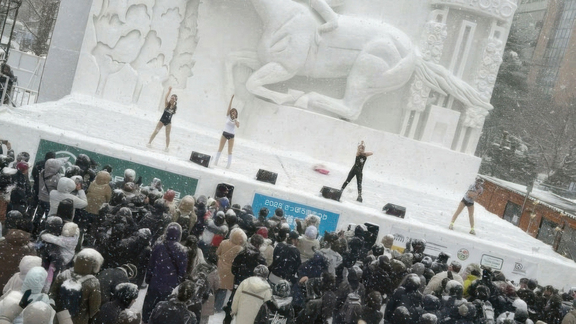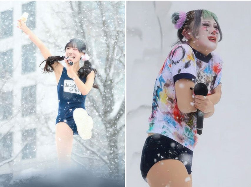 Nhóm nhạc thần tượng Nhật Bản Planck Stars đang gây sốc khi mặc đồ bơi biểu diễn dưới cái lạnh khắc nghiệt tại Lễ hội Tuyết Sapporo ở Hokkaido (Nhật Bản).
