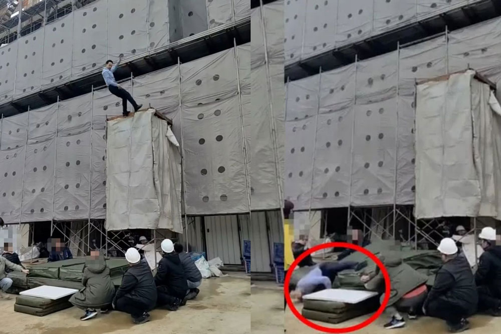 Tuy nhiên, do lực rơi mạnh, anh trượt khỏi khu vực bảo hộ, khiến đầu và người đập xuống nền bê tông. Diễn viên nhanh chóng được sơ cứu, đưa đi cấp cứu trong tình trạng hôn mê.